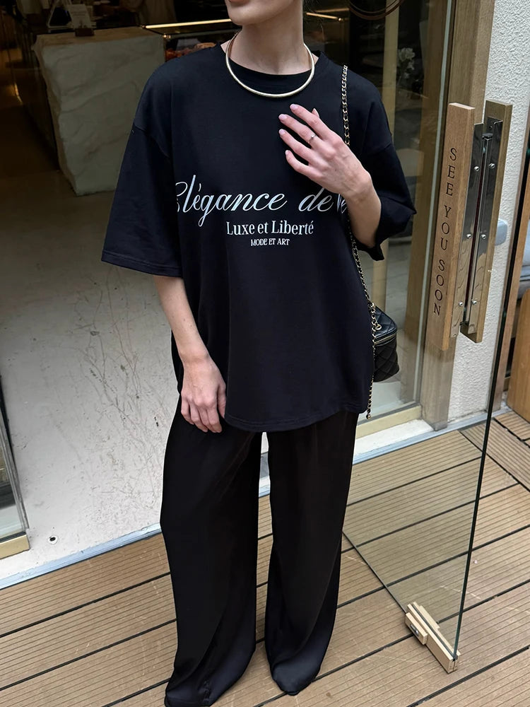 Satin trousers with a high waist and lace-up drawstring for a comfortable fit. The loose silhouette provides comfort and elegance, perfect for casual outings or a streetwear look.