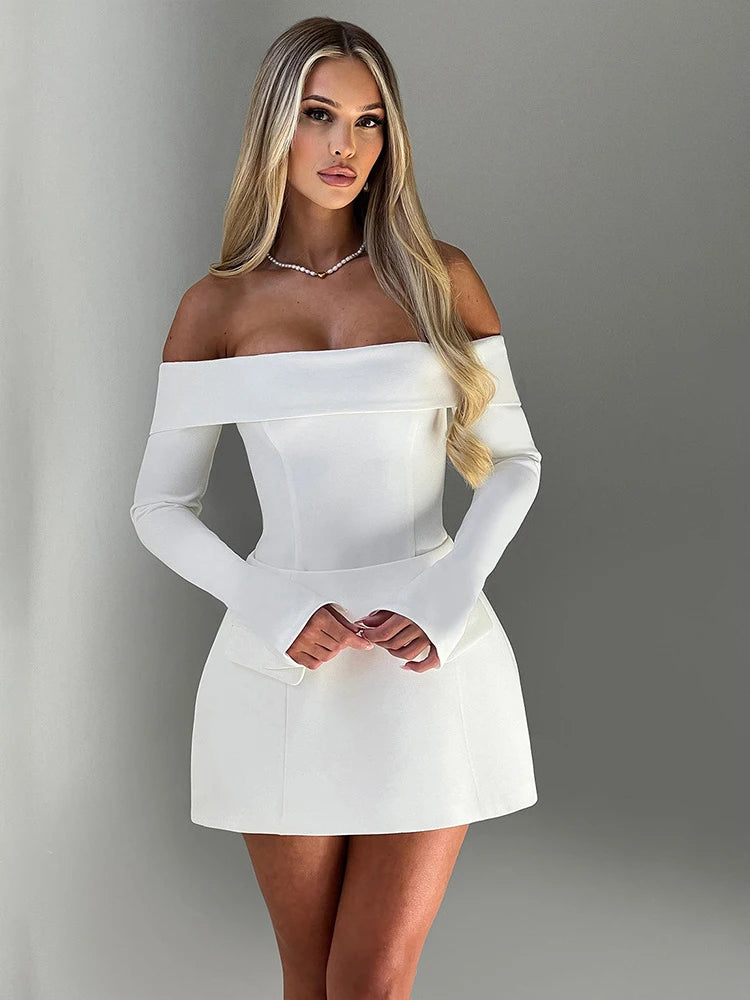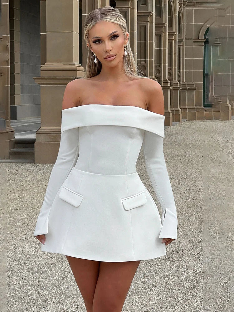 Το Mini Φόρεμα "Velvet Noir Mini" είναι το απόλυτο κομμάτι για να εντυπωσιάσετε, συνδυάζοντας το στυλ Street Trendsetters με τη σέξι αύρα του Clubwear. Η γραμμή Off-Shoulder (Slash Neck) και η εντυπωσιακή ανοιχτή πλάτη (Backless Decoration), το καθιστούν ιδανικό για δυναμικές εμφανίσεις το Φθινόπωρο/Χειμώνα.